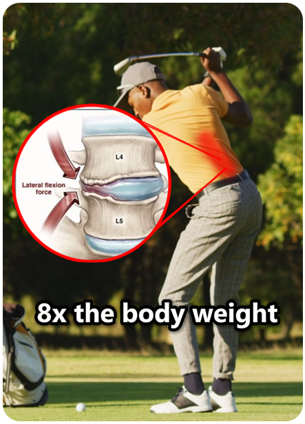 I take care of so many golfers in my practice, because the modern golf swing produces 8X the body weight on their lower backs as they push off the ground and hit the ball. That swing for power is very demanding on the lumbar discs.